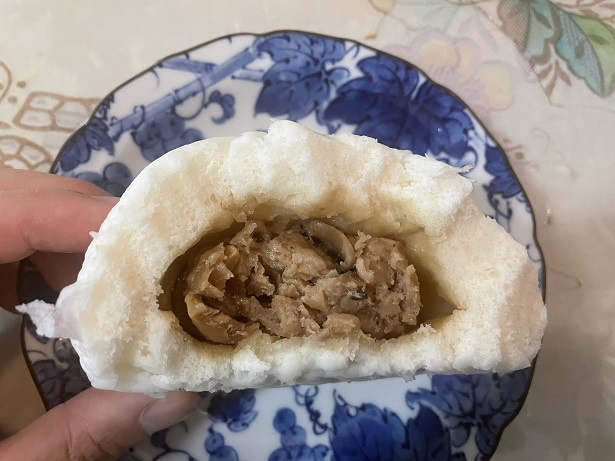 中身はシイタケ、タケノコ、玉ねぎ、豚のあらびき肉とオーソドックスな感じでした。癖が無く味もそんなに濃く無くとても美味しい肉まんでした。