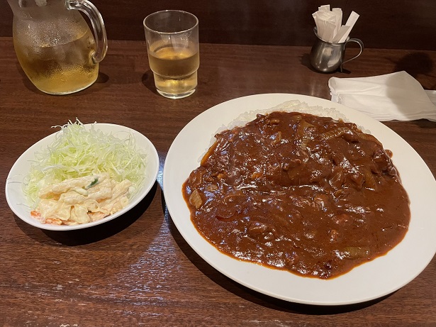 注文したのはハヤシライス(1380円)+大盛り(180円)です。玉ねぎの甘い感じがしてたまには食べたくなる味です。