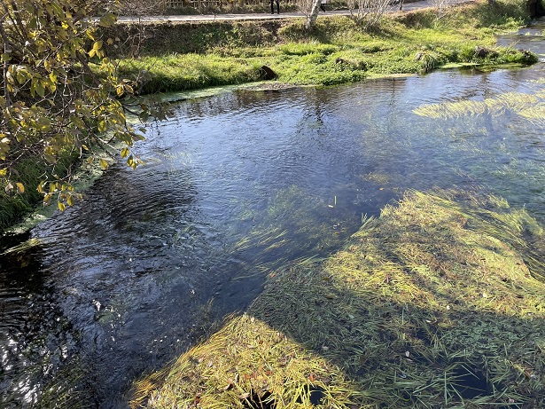 榛の木林資料館(300円)の展望デッキから見た鯉の池です。これも八海には含まれていません。西に回ると湧水がありニジマスを掴める所がありますが、相手は生き物ですので素手で掴むことはできませんでした。抵抗され逃げられてしまいまい、水がかかるだけでした。