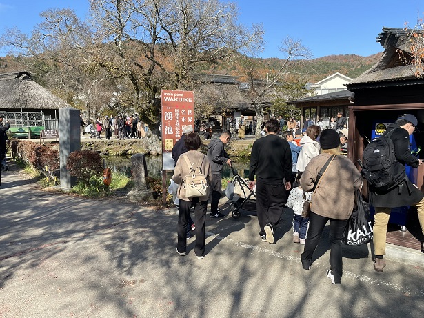 友人と待ち合わせ、そのまま私の車で御坂峠を越えて忍野八海まで来ました。10年ぶりの再会でしたが、少し年を取ったくらいであまり変わっていませんでした。車の中であれやこれやと喋り楽しいドライブでした。10:30お土産センター大林忍野八海駐車場(300円)に車を停め湧池へ向かいました。観光客はインバウンド外人がとても多く、日本人よりも多い感じでした。