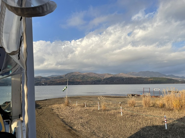 少し時間があったので、ついでに山中湖にも来てみました。山中湖の旭日丘の無料駐車場に停め、森の駅旭日丘の受付に来てみたら丁度2枚だけ座席があったのでカババスに乗ることにしました。ココミルのガイド本には1枚2300円とありましたが、当日は2800円でした。インフレが進んでいるなっと実感しました。