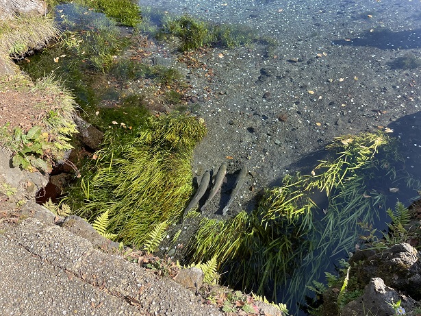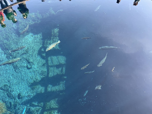 良型のニジマスが泳いでいました。底にはお金が光っていましたが余計で、投げ銭などしない方がいいと思いました。