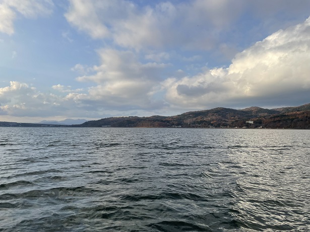 面積は6.8k㎡と富士五湖の中で一番広いですが、水深は13.2mしかありません。周囲は14.3㎞です。