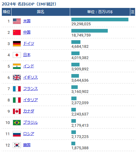 GDPは2023年ドイツに抜かれ4位となりました。