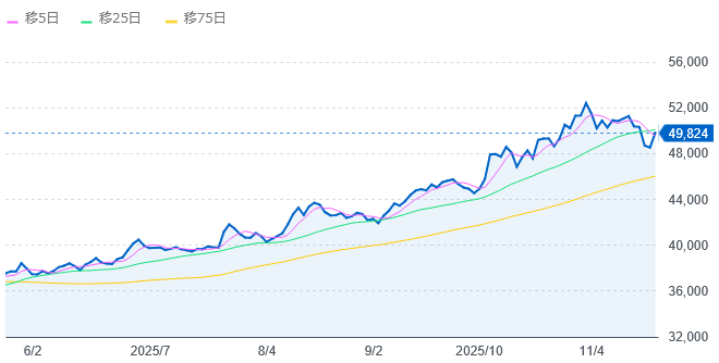 日経平均株価は自民党総裁選前日の10月3日には4万5千円台だったのですがいわゆる高市トレードで今は切っていますが、あれやよあれよで5万円を超えてしまいました。21.3兆円という巨額の予算に市場はどう反応するのか見てみたいところです。