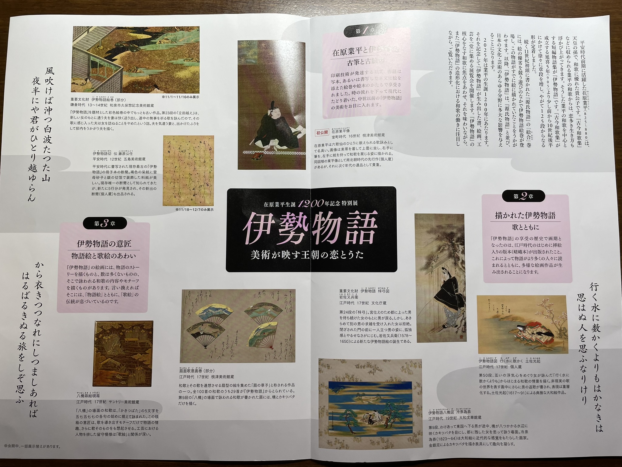 しかし伊勢物語は鎌倉時代、室町時代、江戸時代といろいろな時代で文学美術として取り上げられており、それだけ重要な位置づけだったんだなっと思いました。それらの時代を通して平安時代の一場面を見ている感じでいろいろな角度から見れた感じがしました。これだけの作品をよく集めることができたなっと感心しました。12月7日までの期間限定開催ですので是非見にいくといいと思います。