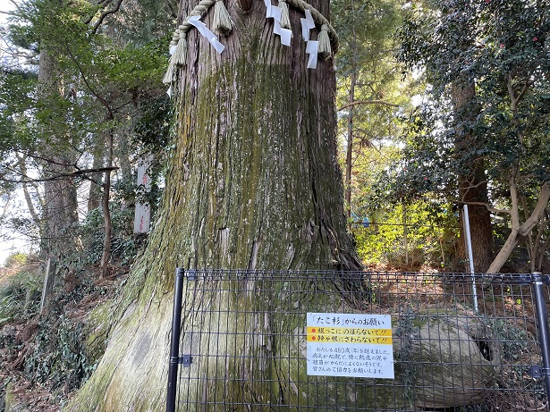 さる園を通り過ぎるとたこ杉がありました。樹齢450年以上らしいですが、ここまで大きな杉は初めてです。10:33。