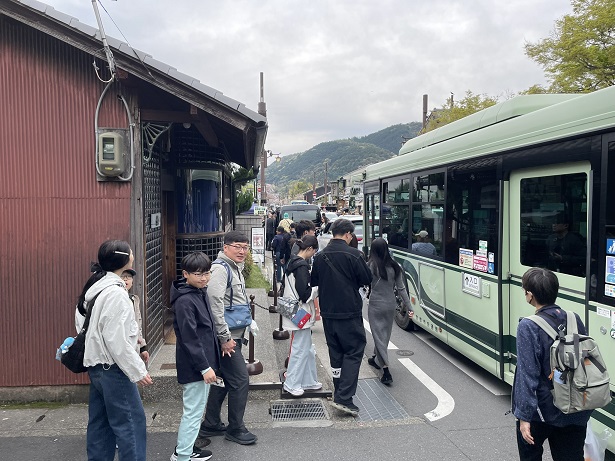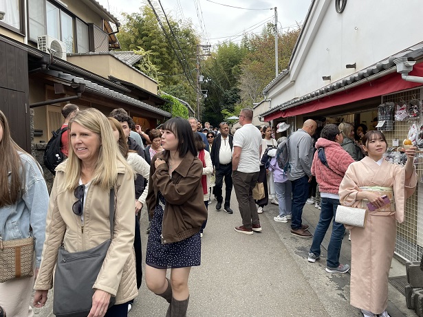 駅の方へ向かって行くと凄い人で車も渋滞していました。勿論ほとんどは外国人観光客です。そんなに広い道ではないので完全なオーバーツーリズムです。