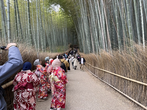 竹林の道に入るところですがまるで原宿みたいな感じでした。