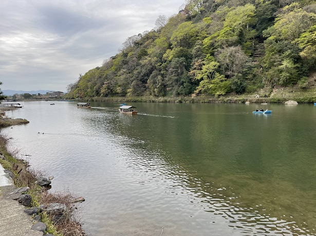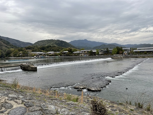嵐山公園を降りて大堰川です。渡月橋の上流側です。